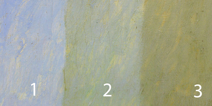 Ehemals transparente Firnisse verändern sich im Licht. Sie werden zunächst gelblich/grünlich bis bräunlich.